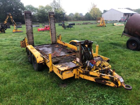 1983 Lolode twin axle low loader trailer, 6.5ft x 11ft with wooden floor, manual winch and ramps
