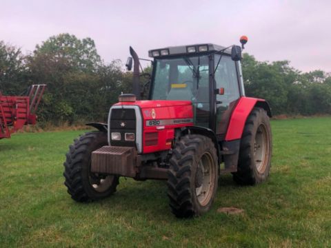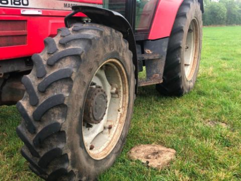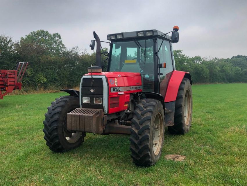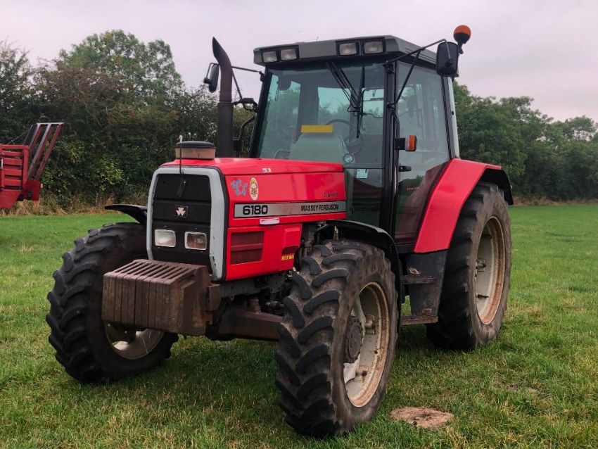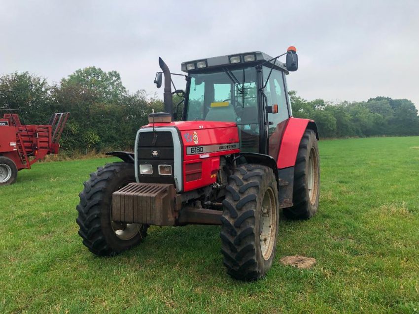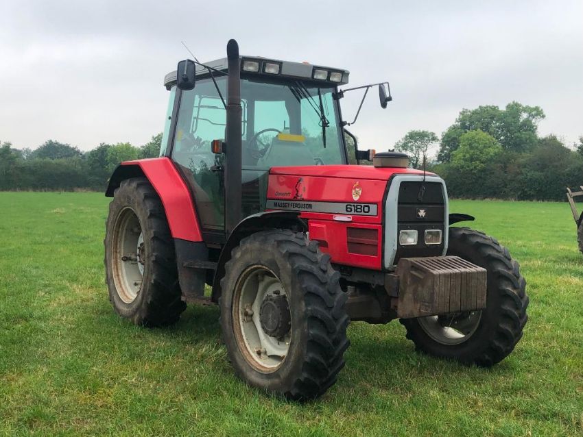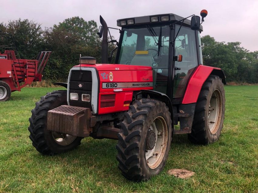 1996 Massey Ferguson 6180 Dynashift 4wd tractor with 3 manual spools and front wafer weights on 13.6R28 front and 16.9R38 rear wheels and tyres. Reg No: N746 EUG. Hours: 6,512. Serial No: E025054