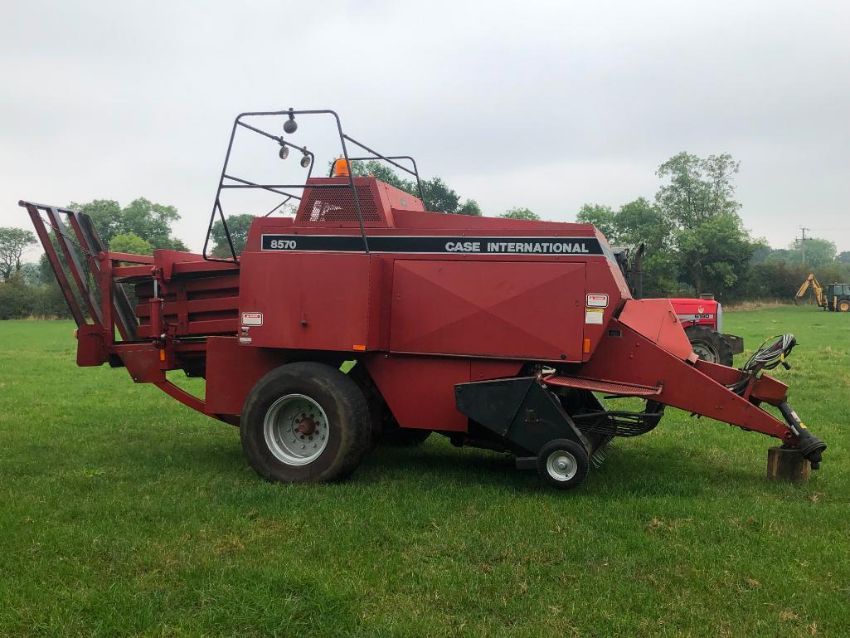 Case International 8570 square baler single axle on 16.5R22.5 wheels and tyres. circa 80,000 bale count. Serial No: CFH0068485. Manual and Control Box in the Office.