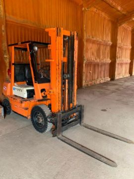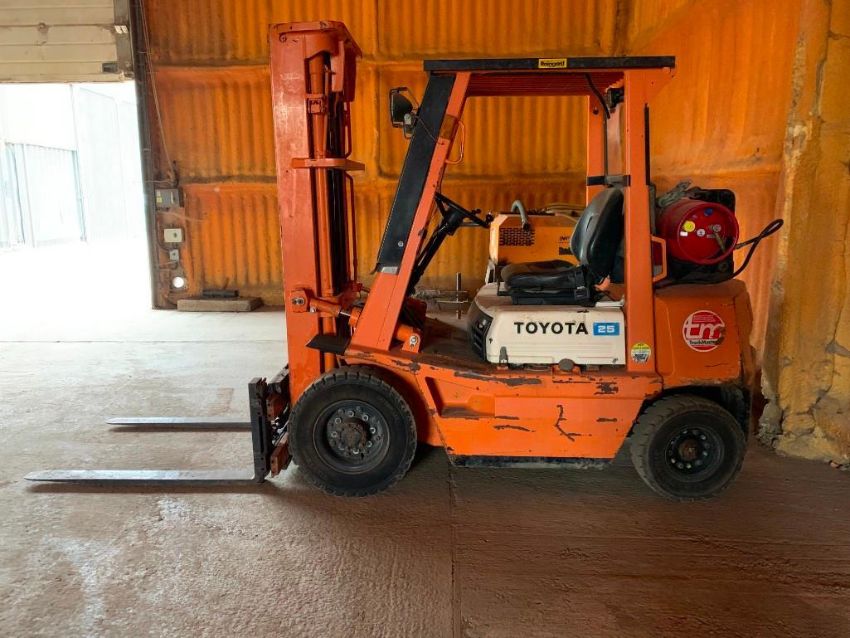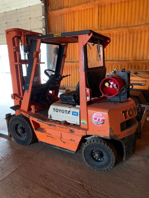 Toyota 25 Forklift, Gas, 1325Kg Max Lift Capacity, Side Shift, Pallet Tines, Rainguard Cab Roof, Hours: 9578, Reg: D362 SFW (86)