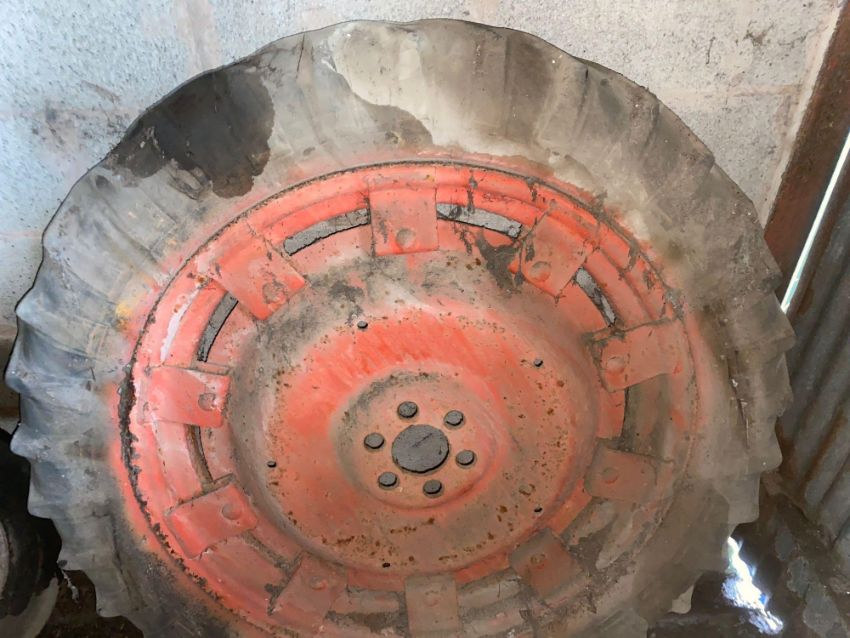 Pair of row crop wheel centres with Dunlop Farm Tractor 9.00-36 tyres