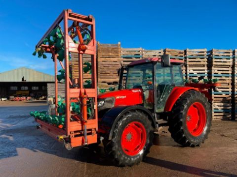 2008 Kubota M108S 4wd tractor with 2 manual spools on 380/85R28 front and 460/85R38 rear wheels and tyres with 2003 VHS/MBE wrap around self steering vegetable harvesting rig. Reg No: FX58 JGF. Hours: 13,603. VHS Serial No: FC0181. Manual in office