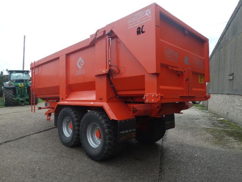 2016 Larrington Harvester 15t twin axle trailer with air brakes, sprung drawbar, hydraulic tailgate and grain chute on 560/60R22.5 wheels and tyres. Serial No: 1725RL0216