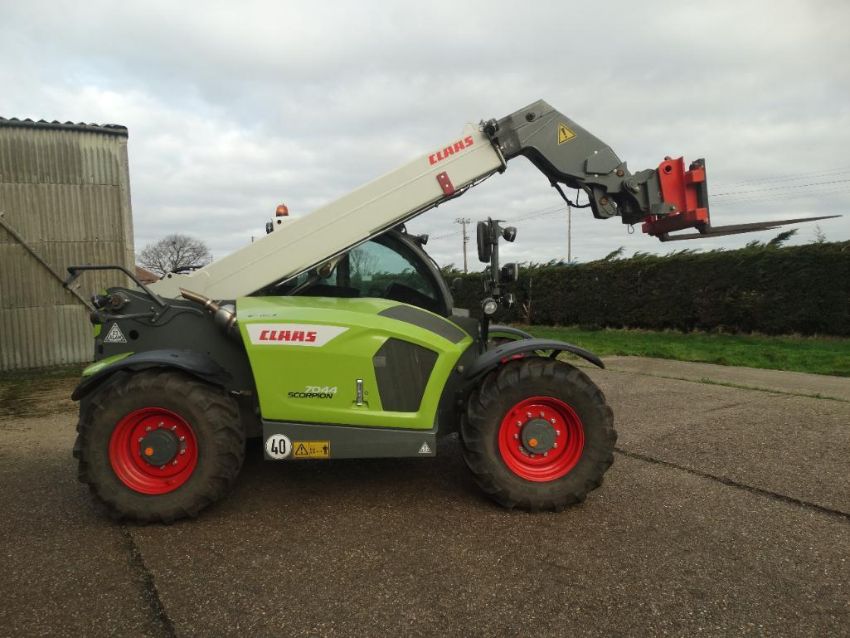 2016 Claas Scorpion 7044 Varipower materials handler with pallet tines and Manitou headstock, boom suspension and PUH on 460/70R24 wheels and tyres. Datatag Registered. Reg No: AY66 APZ. Hours: 690. Serial No: 416110041. PLEASE NOTE: This lot will be reserved for the loading of the auction until 20th April 2022
