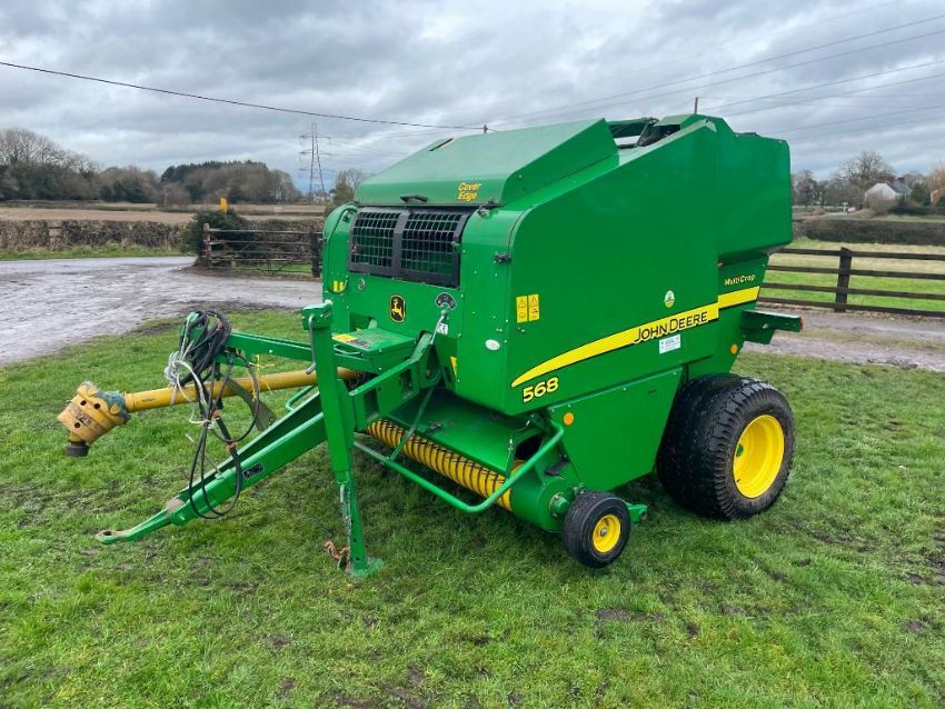 2008 John Deere 568 MultiCrop round baler with hydraulic back door. Serial No: CC0568X082702