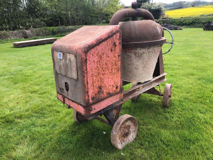 F O'Brian Maximixam vintage cement mixer with Lister D engine. Serial No: L1245