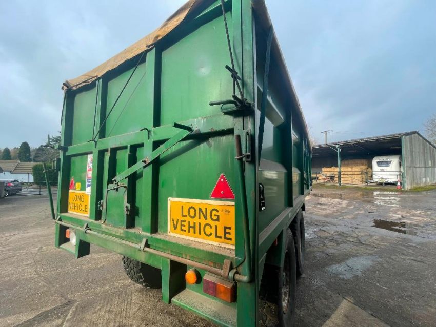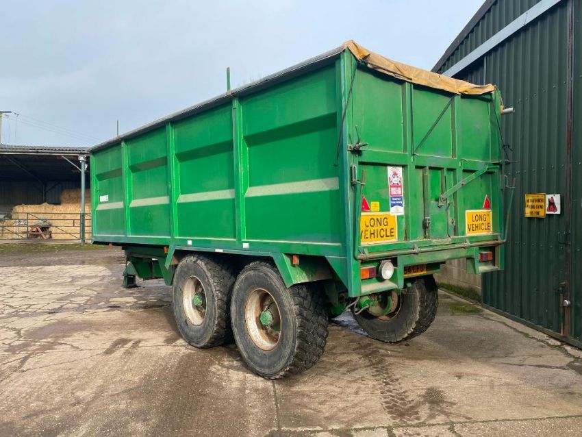 Titan Trailers 18t twin axle grain trailer with sprung drawbar, air brakes, rollover sheet, manual tailgate and grain chute on Michelin 445/65R22.5 wheels and tyres. Serial No: 172070218