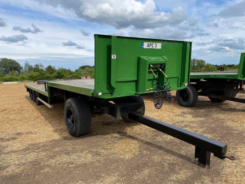 38ft swan neck bale trailer, wooden floor, air brakes, tri-axle on 265/70R19.5 wheels and tyres c/w front dolly on 445/65R19.5 wheels and tyres