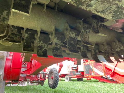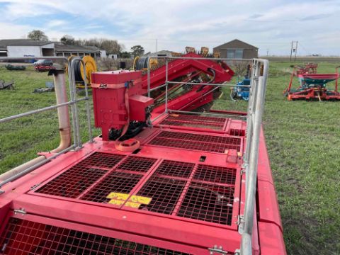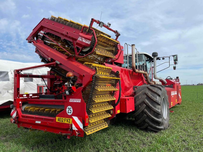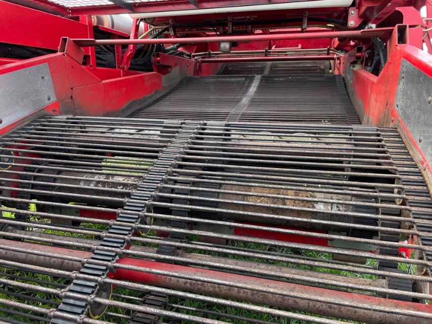 Grimme Varitron 200. Self propelled twin row potato harvester with HT200 hydraulic driven front topper with cross conveyor.