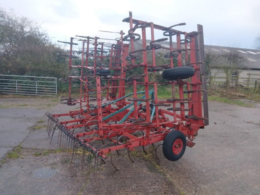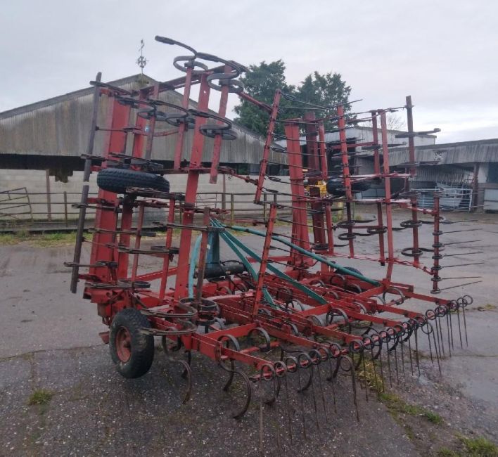 Kverneland 6m Hydraulic Folding Cultivator, Front leveling boards, rear boards, rear following harrow, 4 No. rubber depth wheels