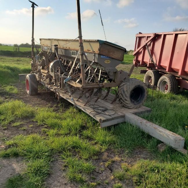 4m spring tine drill + transport trailer. Location: East Yorkshire