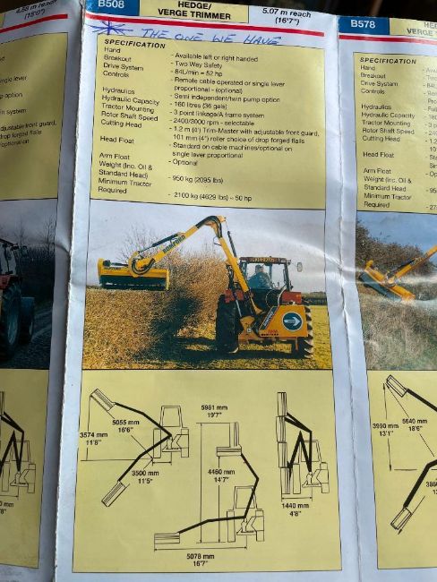 1999 Bomford B508 hedgecutter with hydraulic control and Bomford Trimmaster 1.3m flail head. Serial No: 3480K/99.