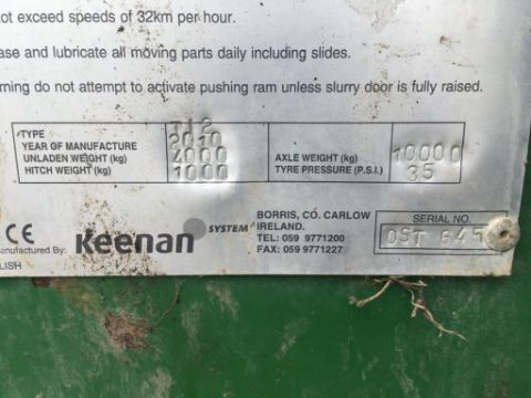 2010 Keenan Orbital 12t muck spreader, single axle on 550/60R22.5 wheels and tyres. Serial No: OST645