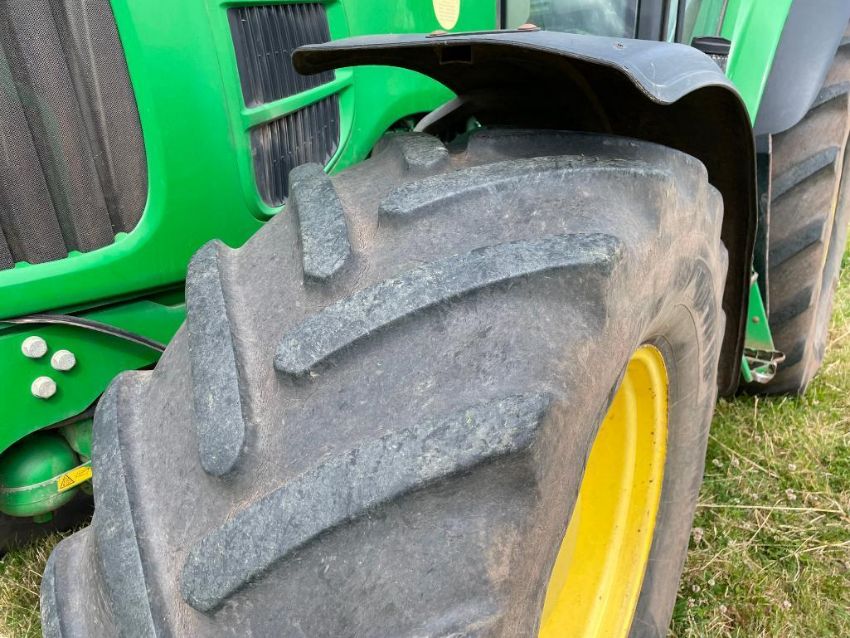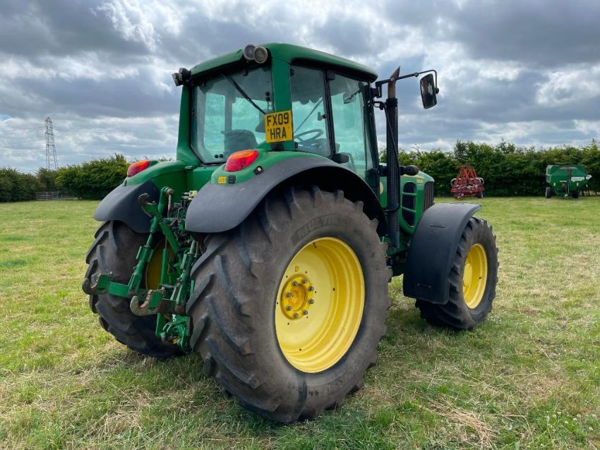 2009 John Deere 6830 Premium 40Kph AutoQuad, 4wd tractor, front TLS, 3 manual spools c/w 2012 Zuidberg front linkage and PTO on Michelin 540/65R28 front and Michelin 650/65R38 rear wheels and tyres. Reg No: FX09 HRA. Hours: 6,038. Serial No: L06830K616222
