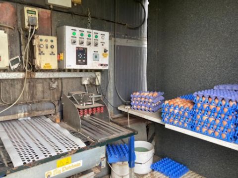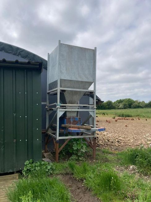 Liberty Livestock Free Range Mobile Poultry Shed. For 1925 birds at 9 birds per square metre. Equipped with big Dutchman feeders, nest boxes, separate egg room, automatic popholes and EPA dusk to dawn dimmer.