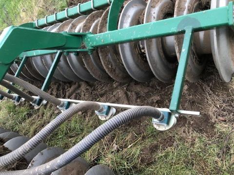 3 Meter, 5 Subsoiler Legs, 2 Rows of Discs, Steel Packer Roller, c/w 2021 Stocks Turbo i-con Seeding Unit, 3- Point Linkage Mounted