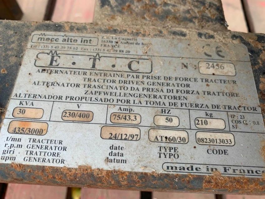 ETC 30KVA PTO Generator, 3-Point Linkage Mounted