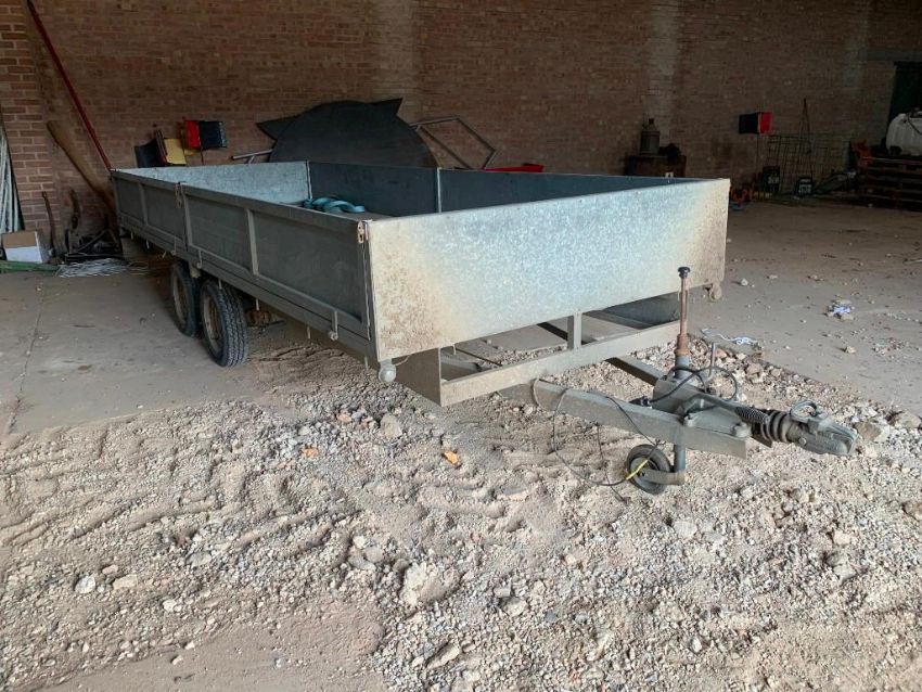 Misc. 16ft Galvanised Car Trailer, Tandem Axle, Drop Down Sides, Lights
