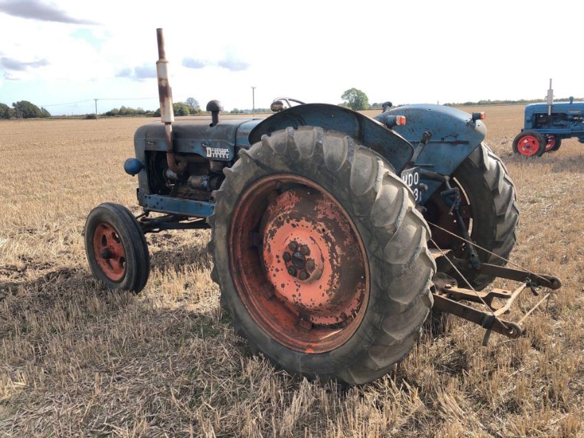 1955 Fordson Major diesel 2wd tractor with side belt pulley, rear linkage and drawbar on 6.00-19 front and 12.4/11-36 rear wheels and tyres. Reg No: HDO 533. Hours: 2542. Serial No: 1328328. NB: Original buff log book and history present