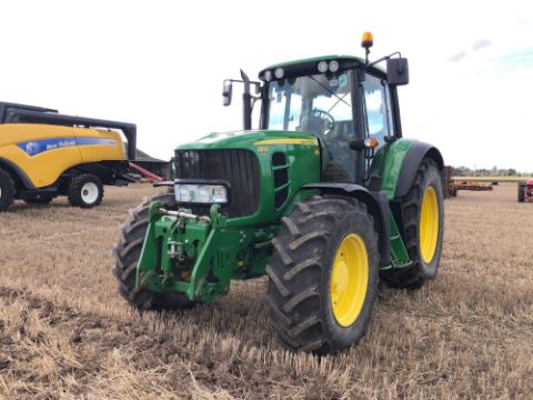 2011 John Deere 6830 Premium 4wd 40kph AutoQuad tractor with Degenhart front linkage, 3 manual spools, cab and front suspension on 420/85R28 front and 520/85R38 rear wheels and tyres. Datatag Registered. Reg No: AE11 FPG. Hours: 3142. Serial No: LO6830XCBK67388