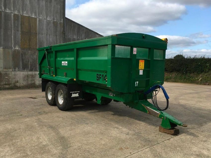 2006 Richard Western 14T twin axle grain trailer with hydraulic tailgate, manual grain chute, hydraulic brakes, on 445/65R22.5 wheels and tyres. C/w rollover sheet. Serial No: 13290