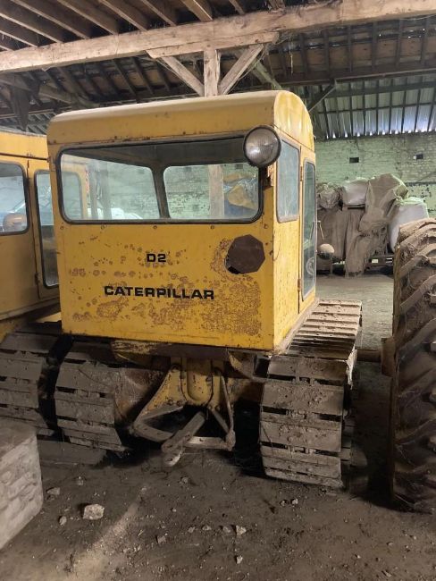 Caterpillar D2 Crawler Tractor, Metal Tracks, Fully Enclosed Cab, Rear Drawbar, Front & Rear Light