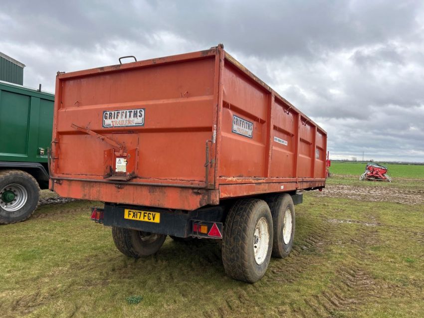 2000 Marston GLS12 12t twin axle trailer with removable sides, c/w manual rear door and grain chute on 385/65R22.5 wheels and tyres. Serial No: 502588