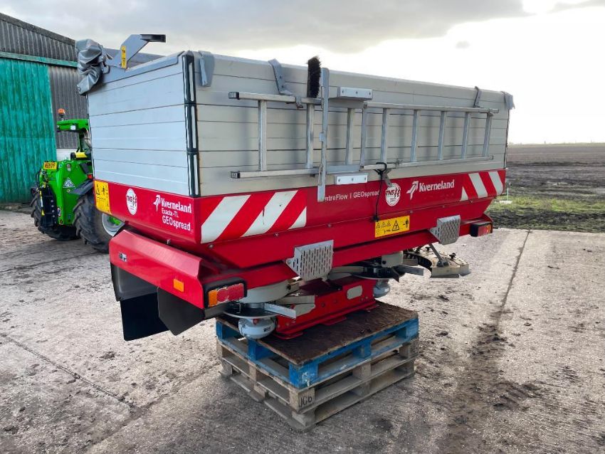 2014 Kverneland Exacta-TL Geospread 24m twin disc fertiliser spreader with weigh cells, border control, GPS shutoff with control screen, ISOBUS compatible. Serial No: VN2420101041