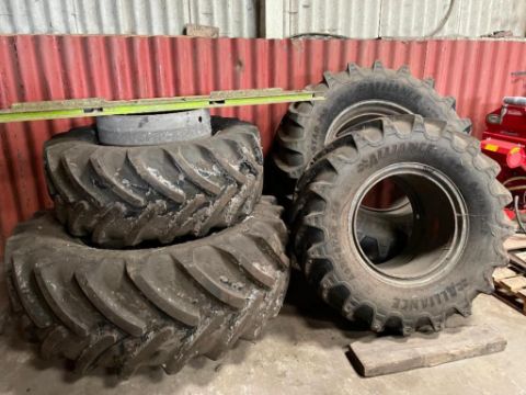 Set Alliance 540/65R28 front and Alliance 650/65R38 rear dual wheels and tyres with clamps