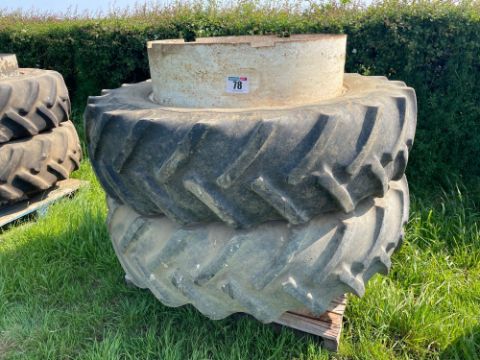 Pair Goodyear 16.9R38 dual wheels and tyres with clamps
