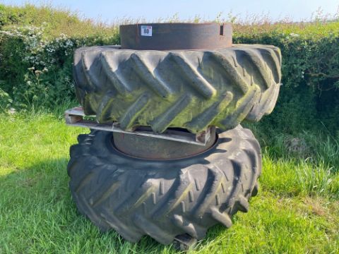 Pair Kleber 20.8R38 stocks dual wheels and tyres with clamps
