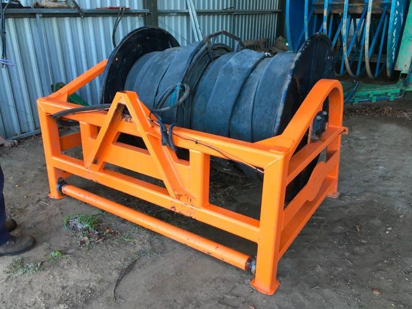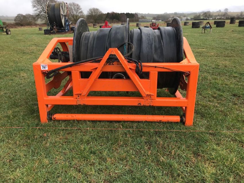 Gissing 400m mounted reeler, gear box drive. C/w Qty of pipe