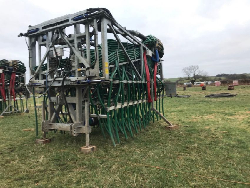2018 Vogelsang SSG1140 32m (folds back to 24m) hydraulic folding umbilical dribble bar, air operated section shut off from cab. C/w Krohne flow meter and Tanlake application monitor. On the farm from new.