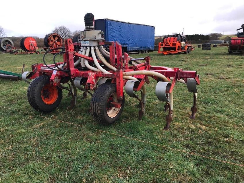 Kongskilde 4.2m tine slurry injector, 3 point linkage mounted. C/w Vogelsang slurry kit, Vibroflex tines, depth wheels