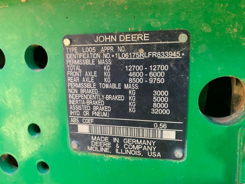2015 John Deere 6175R Autopowr 50K Gearbox, 4 No. Rear Spools, Air & Hydraulic Brakes, Front Linkage, Front PTO, Trelleborg Tyres: Rear: 380/90 R54, Front: 14.9 R34, Reg: AP15 VST, Hours: 5,700, Serial No: 1L06175RLFR833945