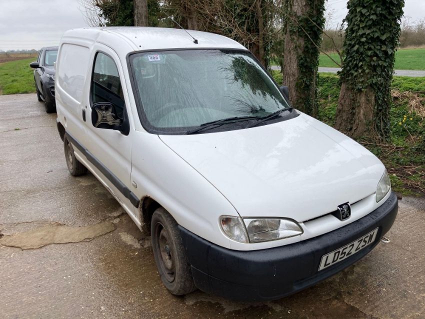 2002 Peugeot Partner 3 door van, white with cloth interior on 175/65R14 wheels and tyres. Reg No: LD52 ZSW. Mileage: 112,392. MOT Expires: 04/09/2023