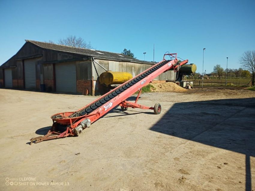 Swift lift 3 phase rubber belt conveyor, 30ft long & 8ft rotating extension. Serial No: SL-I100-S808