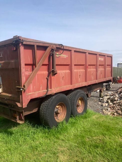 Marshall 14t twin axle grain trailer with hydraulic rear door and grain chute