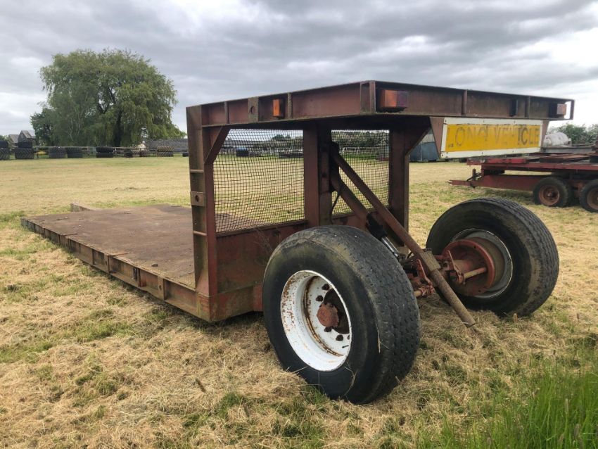 Drop deck low loader 5.5m x 2.4m, hydraulic lowering metal floor with rear single axle on 385/65R22.5 wheels and tyres