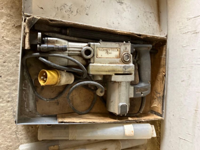 Hammer drill with drill bits and chisels