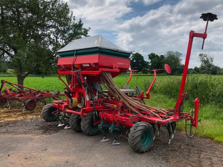 2001 Kverneland Accord TS 4m pneumatic tine drill c/w tramline eradicators, pre-emergence markers, bout markers and following harrow. Serial No: 102/03/01