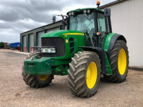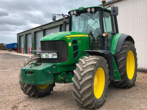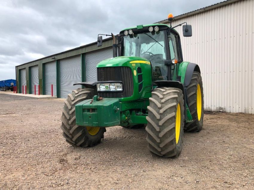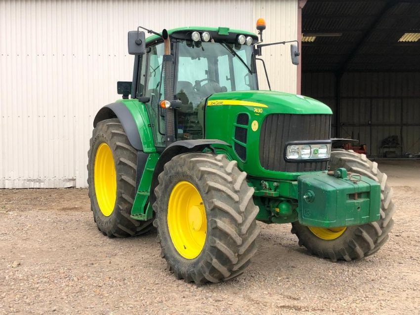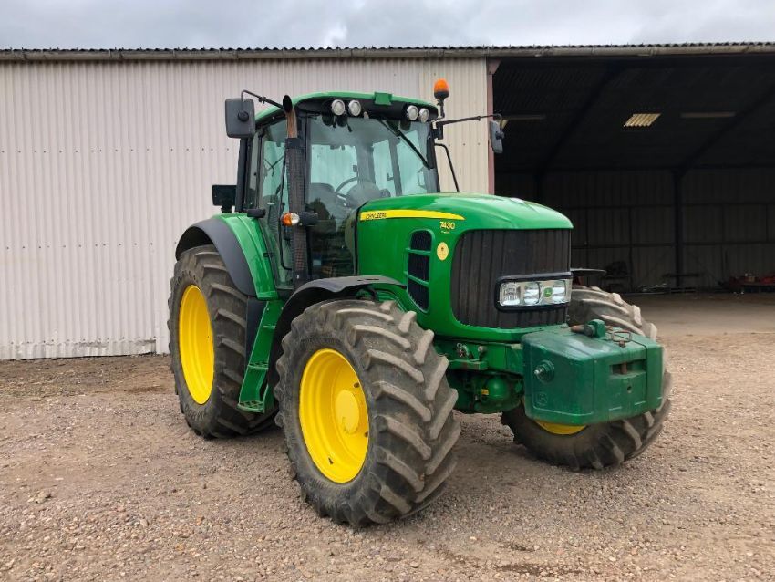 2009 John Deere 7430 Premium 40Kph AutoQuad 4wd tractor with front and cab suspension, 4 manual spools and 900kg front weight block on Trelleborg 540/65R30 front and Trelleborg 650/65R42 rear wheels and tyres. Reg: FX09 FEG. Hours: 5.861. Serial No: L07430K590728