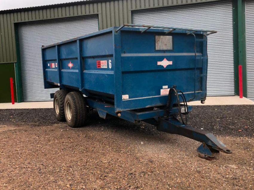 1989 AS Marston ACE FF10 10t twin axle grain trailer with sprung drawbar, manual tailgate and grain chute on Vredestein 15.0/70-18 wheels and tyres. Serial No: 15223