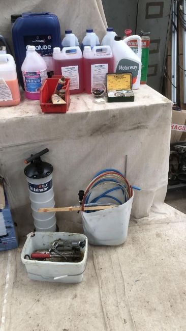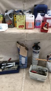 Qty Oils, Antifreeze, Grease, Grease Guns and Oil Extractor