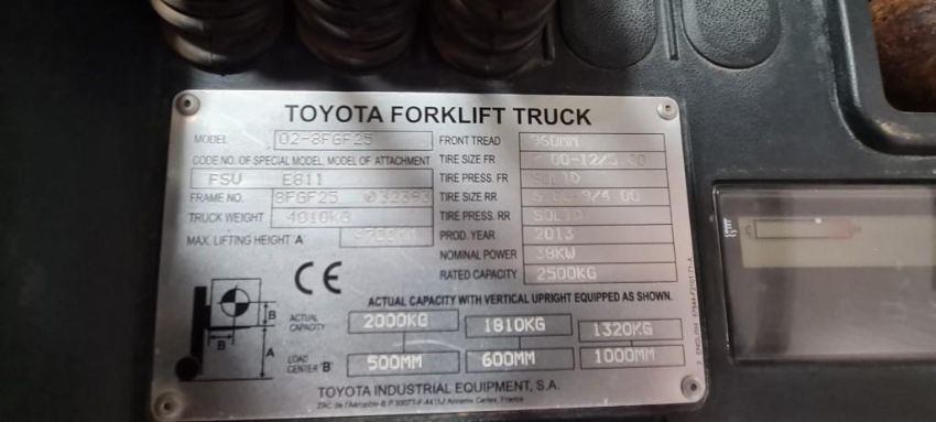Toyota Tonero 25 Gas Forklift, 2.5T Lifting Capacity, 4.7m Max Lift Height Triple Mast