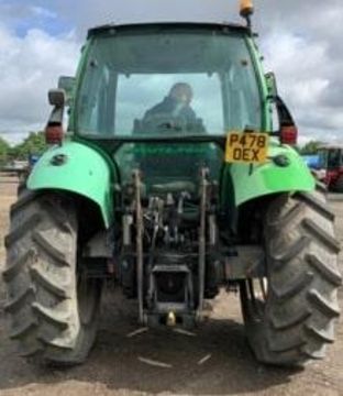 Deutz Fahr Agrotron 90, Tyres: Rear BKT Agrimax 420/85 R38, Front: BKT Agrimax 420/85 R24, No Rear Link Arms, (Alternator and Belts Changed 500 Hours Ago, Hub Seal on Rear Axle Replaced at 8,900 Hours, Full Service at 9,150 Hours, Sr=tarter and Battery Weak and May Require Jump Starting)