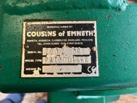 2012 Cousins Patriot 3m, 5No. Legs, 2No. Rows Discs, D-Ring Packer, Hydraulic Disc Depth Adjustment, Shear Bolt, 3-Point Linkage Mounted, Model No: PAT300TSRR, Serial No: 2012090