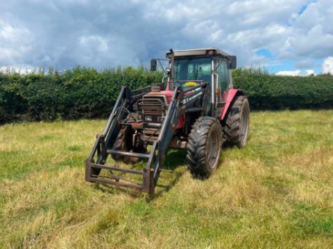 1995 Massey Ferguson 3085 4wd Autotronic tractor with Riko TN500 front loader and 2 manual spools on 13.6R28 front and 16.9R38 rear wheels and tyres. Reg No: N595 WAU. Hours: 11,470. Serial No: D025024