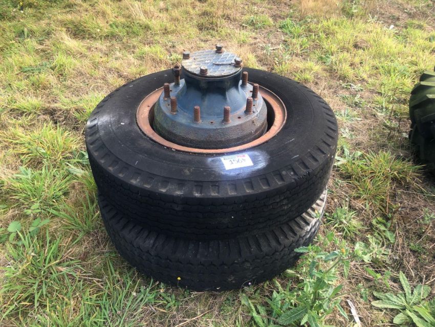Pair Dunlop 9.00-20 wheels and tyres with brake assembly