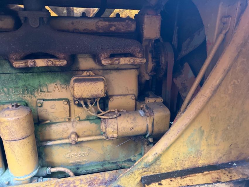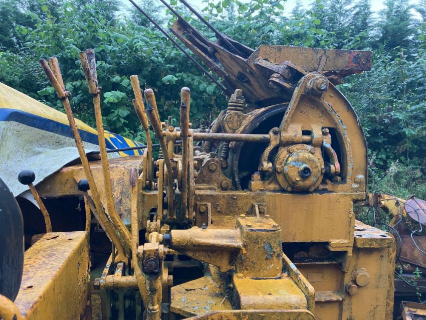 1950 Caterpillar D6 wide gauge metal tracked crawler with 20" tracks, rear swinging drawbar and Caterpillar belly mounted cable operated side arm crane with counterbalance weight. Serial No: 9U5204